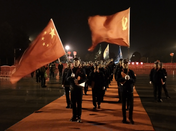 國旗招展,黨旗飄揚(yáng)。12月26日4:50,奧吉娜緬懷偉人科創(chuàng)先鋒團(tuán)全員整隊(duì)集合,邁著整齊矯健的步伐,高唱《中國人民解放軍軍歌》前往毛澤東紀(jì)念館銅像廣場。