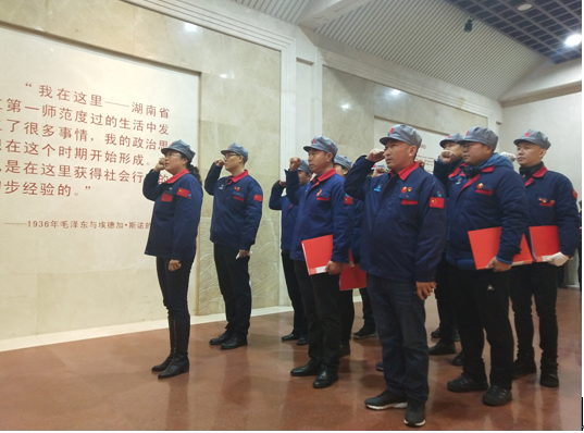 第一師范紀(jì)念館序廳,參加本次活動的奧吉娜集團(tuán)黨員重溫入黨誓詞。
