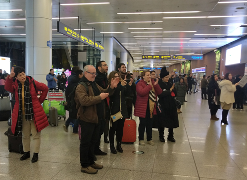 (圖)在沈陽桃仙國際機(jī)場齊頌《沁園春·雪》時(shí),一群外國友人為奧吉娜集團(tuán)科創(chuàng)先鋒團(tuán)拍照鼓掌,他們沒想到中國人是如此崇拜毛澤東主席。