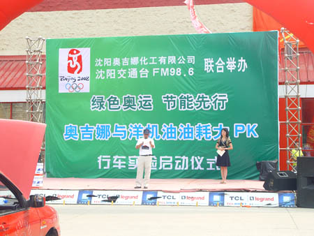 奧運倒計時一周年之際,由沈陽奧吉娜化工有限公司與沈陽交通臺聯(lián)合舉辦的“綠色奧運、節(jié)能先行,奧吉娜與洋機油萬里油耗大PK”行車實驗拉開了序幕,2007的8月24日上午,舉行了啟動儀式。